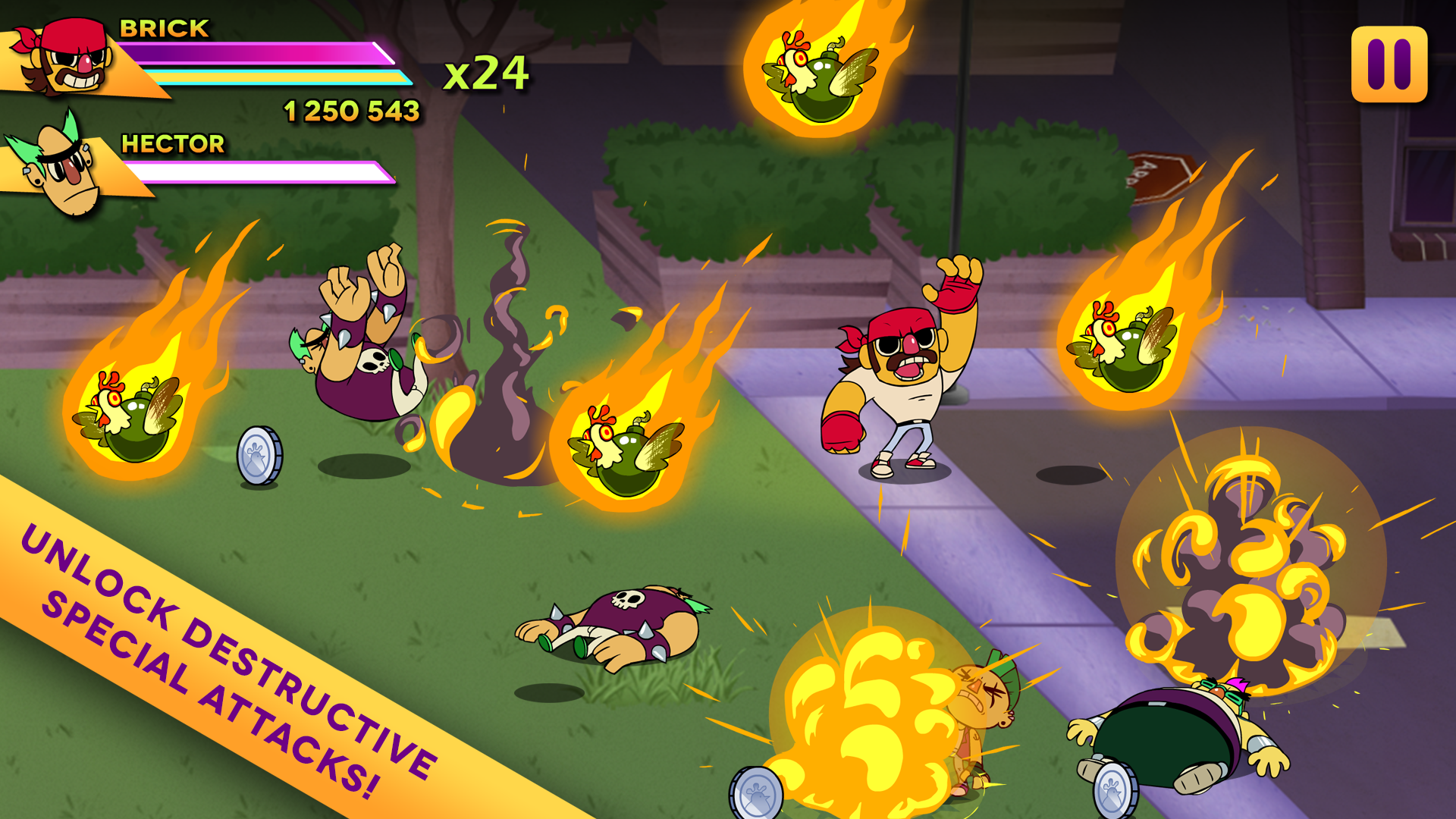 Divertente e ben fatto, ricorda davvero il vecchio Double Dragon; è vero che i controlli con touch e swype alle volte confondono, ma rendono più dinamica e frenetica l'azione. Io in questo caso li preferisco, e non sono così pessimi come si potrebbe pensare, basta poco per prenderci la mano. I primi livelli fungono da tutorial, si impara come muovere il personaggio e come agire. Molto carina la componente di potenziamento del personaggio mutuata dagli RPG, per cui è possibile aumentare le statistiche del nostro eroe, le mosse speciali (se ne può utilizzare una per livello, scelta casualmente prima di entrare in azione), ma anche l'effetto dei potenziamenti che si trovano in giro. La difficoltà mi sembra ben calibrata, ottenere tre stelline nella maggior parte dei livelli richiede un po' di fatica.