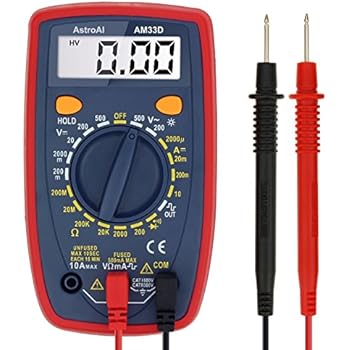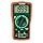 Convenient mini size multimeter with protective rubber holster and tilt stand. Manual ranging, measures AC and DC Voltage to 600V, Resistance with Continuity and Diode functions, DC Current to 10A, Temperature, and 9V/1.5V Battery test. Includes protective rubber holster, 9V battery, test leads and Type K thermocouple probe.