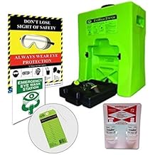 An eye wash unit is a device used to support eye washing operations that involve foreign debris or chemicals that may enter the eye. An eyewash station is used to increase workplace safety and can help protect against airborne particulates. It also protects against and biohazard, chemical, contamination, gas, vapors, and smoke, as well as liquid splash that may require eyewash station applications. Eye wash station solutions commonly contain pH neutralizing, distilled water, or other sterile liquids. Solutions can discharge from an eye wash station in a single gentle stream, or may have dual spray abilities for washing both eyes simultaneously. An eyewash station can come with an attached mirror and commonly has customer-facing instructions with pictures or eye wash procedure diagrams to demonstrate eyewash station applications. Single or multiple eyewash containers come with an eyewash station. An eyewash station may come with a bottle body that provides a twist cap to break the seal and expose the protected liquid. An eyewash body is often squeezable, and can offer one-handed inversion for ease of operation and steady rinsing. An eyewash station may have a built-in eyepiece to assist in keeping eyes open, while streaming occurs. An eyewash station can be portable, or may include a wall-mount frame that attaches to a wall, cart, or mobile stand and can be used support it. An eyewash station can also come as a singular unit that attaches to a ceiling, floor, or platform to provide liquid streaming. An eye wash station can meet American National Standards Institute (ANSI) standards such as ANSI 2358.1.