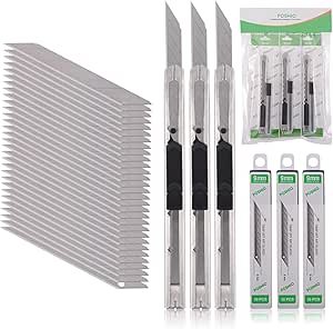 Feature: Easy to carry and convenient to use. This snap blade utility knife always has a fresh edge when you need it. When the blade gets dull simply snap off the tip for a razor sharp cutting edge. Package include: 3PCS utility knife and 30pcs blades