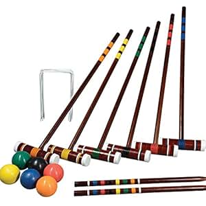 - (6) 7" X 1.875" wood mallet heads and (6) 26" wood mallet lacquered chestnut finish handles w/caps