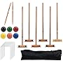 This product looks good at a glance but has poor quality especially for the price. The carrying bag had a 6 inch whole in the seam. The wood mallets are made with soft wood. Two of the poles came with a split in the length of it which will make them break easily with little pressure. One of the mallet polls would not screw into the whole of the head all the way. I bought this as a gift for my sons birthday party so when he opened it, despite its poor condition we played with it anyway. The finish on the painted balls and the stained mallets got dented and gashed up in one days play. Ironically the metal wickets are extremely strong and sturdy. They would last a lifetime unfortunately nothing else will. We are extremely disappointed by the poor quality of this product.