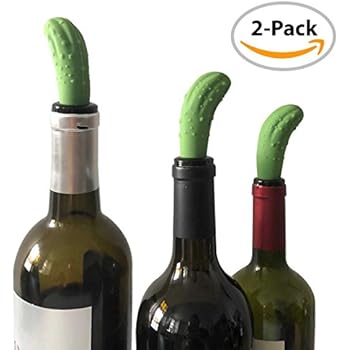 Pickle Wine Stopper - Funny Wine Bottle Stopper - Fun Silicone Bottle Stopper - WINE SAVER/PRESERVER - 2-PACK -By HAWWWY
