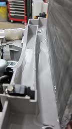 Home dehumidifiers seem to share the same basic design: two condensing radiators sit above a "tray" (really just a molded bit of the very elaborate, single-piece plastic inner skeleton, not a separate bit which can be removed for cleaning).