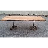 Highly Figuredd Live Edge Ambrosia Maple Slab Dining Table on cast gear bases