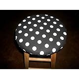 13" Reversible Bar Stool Slip Cover Black Polka Dot to Pink Cabbage Rose Flowers