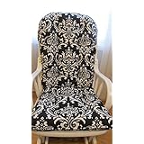 Two Piece Cushion Set for Glider or Rocking Chair in Black and White Damask Floral