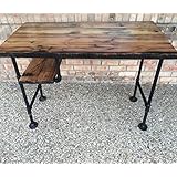 Reclaimed Wood Desk Table - Rustic Solid Oak W/ 28" Black Iron Pipe legs.