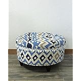 Upholstered Ottoman, Blue Ottoman, Upholstered Stool, Tufted Ottoman, Alan Campbell, China Seas, Quadrille Fabric, Cap Ferrat