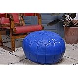 Moroccan Leather Pouf Ottoman Footstool Cover , Blue, Handmade with 100% Quality Goat's Leather.