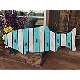 Coatrack FISH with metal hooks Shaped Fish Coat Towel Rack Nautical Lake Beach Ocean Sea Wood Wall Home Decor Caribbean Bright BLUE White 32" X 14" Unique Handmade in USA