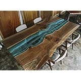 Bookmatched Walnut With Blue Glass River Live Edge Dining Table
