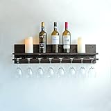 Rustic Floating Wood Wine Rack Shelf & Glass Holder Organizer Holds 8 Wine Glasses, Espresso Stain