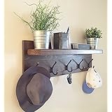 Rustic Coat Rack with Floating Shelf and Bronze Hooks