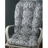 Two Piece Cushion Set for Glider or Rocking Chair in Grey and White Damask
