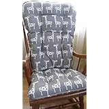 Two Piece Cushion Set for Glider or Rocking Chair in Grey with White Stretch Giraffes