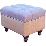 Grey Linen and Burlap Tufted Ottoman USA~ Design 59 Furniture