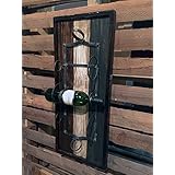 WINE RACK Wall Mounted - Espresso Brown - Rustic Pallet Wall Wood Style - Vertical 3 Bottle Holder - Cream Stained