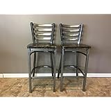Set Of 2 Reclaimed Wood Seat Bar Stool | With Ladder Back Metal Frame | Restaurant Grade | High Quality |30 Inch High Barstool
