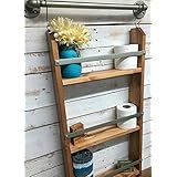 Wood Ladder Shelf- Wooden Wall Shelf, rustic bathroom shelf, industrial shelf, farmhouse shelf, cottage chic, home décor, shelf w/pipe towel bar