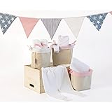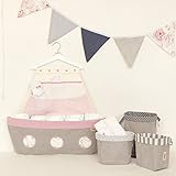 Baby girl new born shower gift - "MEDIO", Boat shaped organizer, Fabric storage boxes set and a triangle banner.