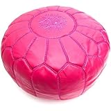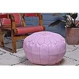 Moroccan Leather Pouf Ottoman Footstool Cover , Pink, Handmade with 100% Quality Goat's Leather.