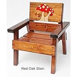 Kids Painted Wood Chair, Indoor / Outdoor Childrens' Furniture, Engraved Mushrooms
