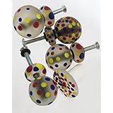 5 Handmade Venetian Glass Cabinet Knobs for Furniture, Kitchen and Baths, Red,Blue,Yellow Colors and Crystal Clear Sea Glass Look