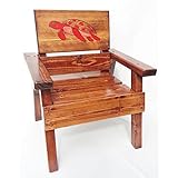 Kids Wooden Nautical Chair, Engraved and Painted Red Sea Turtle, Indoor / Outdoor Furniture