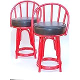 Red Bamboo Rattan Bar Stools Tiki Swivel