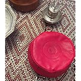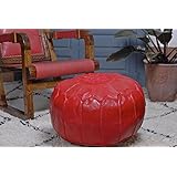 Moroccan Leather Pouf Ottoman Footstool Cover , Red, Handmade with 100% Quality Goat's Leather.