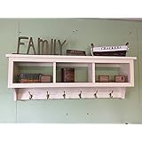 Wood Coat Rack Country Primitive Antiqued Distressed Wall Shelf Antiqued White 36"