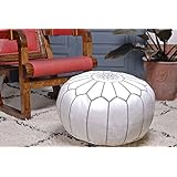 Moroccan Leather Pouf Ottoman Footstool Cover , White, Handmade with 100% Quality Goat's Leather.