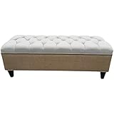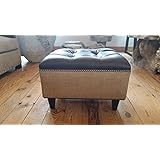 Linen and Burlap Tufted Upholstered Ottoman With Nail Head~ Design 59 inc.