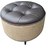 Design 59 inc- Vegan Leather and Burlap Ottoman, 24" Round