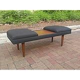 52" Design 59 inc Retro Coffee Table Ottoman, Black Linen with Walnut Teak Laminate Inlay