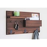 Coat Rack Chestnut Finish with Oil Rubbed Bronze Coat Hooks and Key Hooks Entryway Organizer