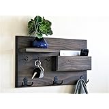 Entryway Organizer Coat Rack Driftwood Weathered Gray Key Hooks and Mail Storage