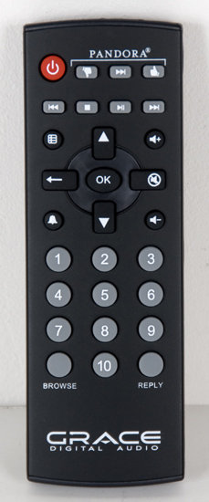 The included handheld remote control is very convenient, especially with its Pandora-specific buttons such as "thumbs up" and "thumbs down." The Grace Digital remote app for Android, which is a free download from the Marketplace/Google Play, works well for ordinary control of the device for selecting stations and volume (although it cannot be used to reconfigure network settings). In order to work, the Android remote app must run on a device that is connected to the same WiFi LAN as the radio.