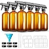 - SET INCLUDED: Mist spray bottles 16oz 6 pcs,6 Black Trigger Nozzles,1 funnels,2 dropper,20 Label,6 black lids,sufficient quantity and complete combination will meet your use and replacement needs,these amber spray bottle is made of thick amber glass,sturdy and strong,good airtight sealing effect prevents rapid evaporation and Helps maintain the original flavor