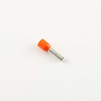 12 gauge orange insulated ferrules, 0.39" (10mm) pin length. Use these ferrules to prevent wire ends from fraying or breaking. The tin-plated copper tubes make for an easy mating point with terminal blocks, or under set screws and pressure plates. Nylon insulation provides easily identifiable color coding. Ferrules also hold up to vibration, can be reconnected multiple times without damage and are a stronger mechanical connections than ring or fork terminals.