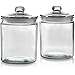 - SET OF 2 CLEAR GLASS STORAGE JARS - PARNOO brings you these elegant and practical glass kitchen storage jars with lids. They're made of exceptionally highquality transparent glass so you can see their contents at a glance. The jars come with matching airtight lids, making them as useful as they are attractive