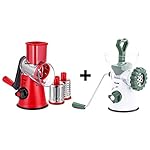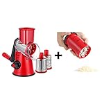 Ourokhome Manual Rotary Cheese Grater - Round Tumbling Box Shredder for Vegetable, Nuts, Potato with Peeler and Brush (Red)
