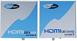The Gefen HDMI CAT-5 MS Extreme Extender extends your HDTV display up to 300 feet away from your HDTV source using two CAT-5 cables. It is equipped with HDMI (high definition multimedia interface) connectors and is capable of supporting DVI (digital visual interface) equipment when used with a HDMI to DVI Adapter, providing greater flexibility and options when integrating several home theater components. The HDMI CAT-5 Extreme-S sender unit sits next to your computer, set-top box or DVD player source. Cables supplied with the HDMI CAT-5 MS Extreme connect your DVI or HDMI source to the send unit. The HDMI CAT-5 Extreme-R receive unit sits next to your HDTV display - up to 300 feet away. The display plugs into the back of the HDMI CAT-5 MS Extreme-R receiver unit. Two CAT-5 cables connect the sender and the receiver units to each other. Note: The HDMI CAT-5 MS Extreme Extender is fully HDCP compliant. Package Includes: HDMI CAT-5 Extreme Sender, HDMI CAT-5 MS Extreme Receiver, One HDMI to HDMI 6 foot cable, Two 5V DC Power Supply.