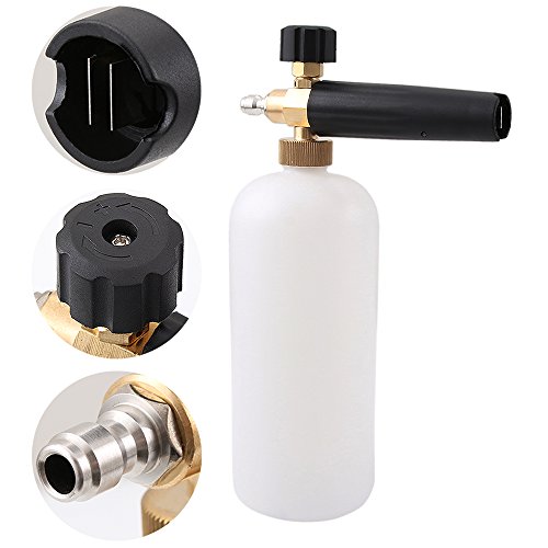 A: Love this sprayer... can control by water pressure from the hose valve handle ..well buil…