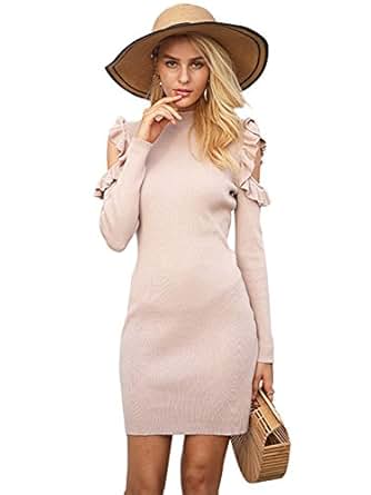 2.Pullover long sleeves knit dress wiht ruffles cold shoudler details, chic designed.