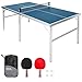 - COMPLETE SET: Includes a mid-size 6 ft x 3 ft ft Table Tennis table with 2 paddles, game net and 4 balls