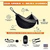 Product Summary: Gold Armour Camping Hammock - XL Double Hammock Portable Hammock Camping Accessories Gear for Outdoor Indoor with Tree Straps, USA Based Brand (Black and Gray)