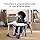 Wipeable and machine-washable seat pad. Tray attached to legs of Highchair when folded for storage. Wipeable plastic tray, footrest, and frame. Use only household soap or detergent and warm water.