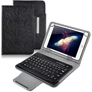 eTopxizu Keyboard Case for 7-8 Inch Universal Tablet,2-in-1 Wireless Detachable Removable Bluetooth Keyboard Leather Travel Windows Android iOS Carrying Cases Cover Holder Folio+Stand(Black)